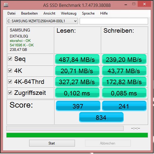 TrimCheck prüfen, es muss in einem Ordner auf der SSD liegen auf dem der User Schreibrechte hat. Dann lässt man es zweimal laufen, beim ersten mal wird die Testdatei erzeugt und gelöscht, beim zweiten mal wird geschaut ob TRIM funktioniert hat. Dazwischen sollte man nichts am Rechner machen und ein paar Minuten warten. Wurde TRIM nicht als funktionierend erkannt, kann man es auch erneut laufen lassen und es prüft die Daten noch einmal.