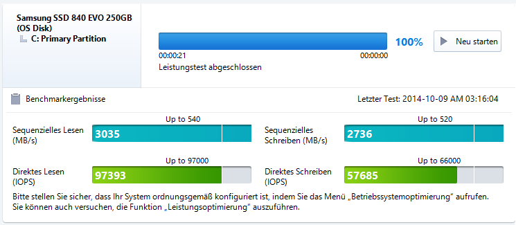 Also die SSD ist aktuell an einem SATA2 Port angeschlossen und kann somit natürlich nicht die volle Performance wie an einem SATA3 Port leisten. Schneller ist es aufjedenfall als mit meiner HDD. Würde bloss gerne wissen ob die Werte so klar gehen an einem SATA2 Port mit der eingebauten SSD oder ob da eigt. noch viel mehr Performance sein müsste.