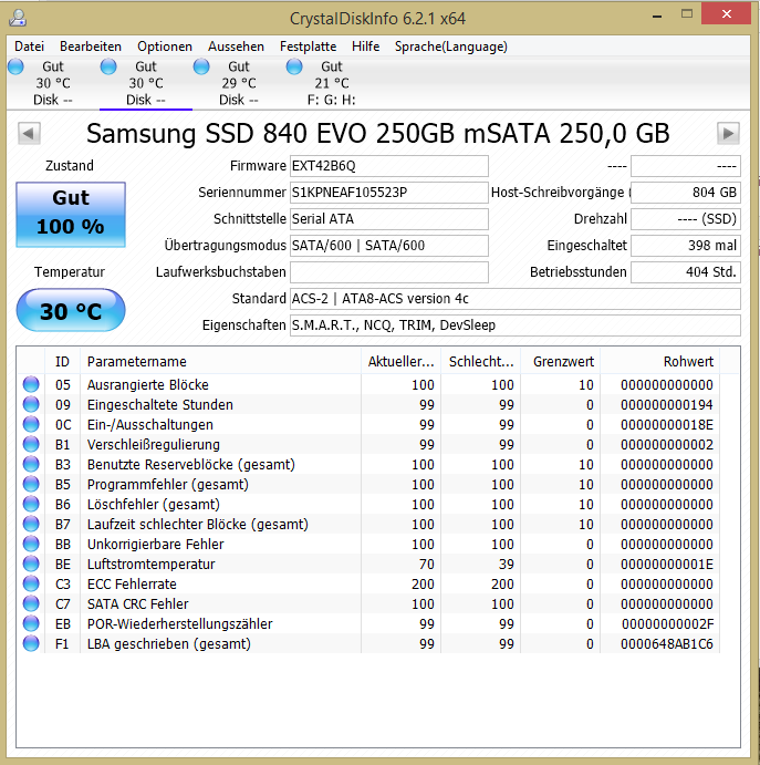 Samsung 840 EVO 256 GB (neueste Firmware)