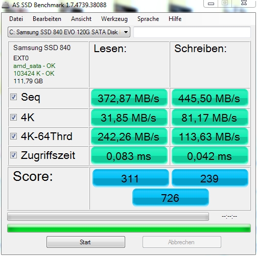 Die 4k Werte hängen vor allem vom Board und dessen Energiespareinstellungen ab, da sind gerade bei AMD Systemen die Werte ohne ensprechende Einstellungen deutlich schlechter als sie bei der jeweiligen SSD ein könnten, aber 25MB/s bei 4k Lesend sind für die MX100 256GB schon nicht so schlecht.