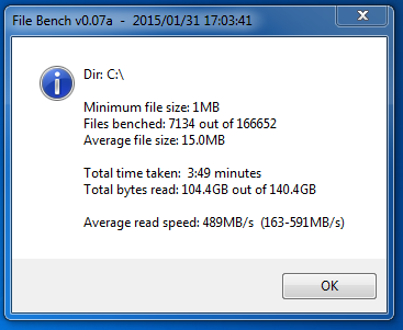 Und wie sieht der Screenshot aus nachdem Du OK gedrückt hast? Vergiss nicht, dass der Virenfinder die eine oder andere Datein in dem Verzeichnis sich beim Lesen überprüft hat, weshalb eben nicht immer alle gleich schnell gelesen werden und ein Durchschnitt von 474MB/s ist für das reale Lesen realer Dateien absolut in Ordung. Außerdem ist der Screen nachdem Du OK drückst der wichtigere, denn da sieht man ob es eine Abhängigkeit vom Alter der Dateien, wenn da die alten viel längstmer als die neuen gelesen werden könne, dann ist es der Bug wie bei der 840 und 840 Evo, aber den haben die Crucial SSD nicht, keine Sorge.
