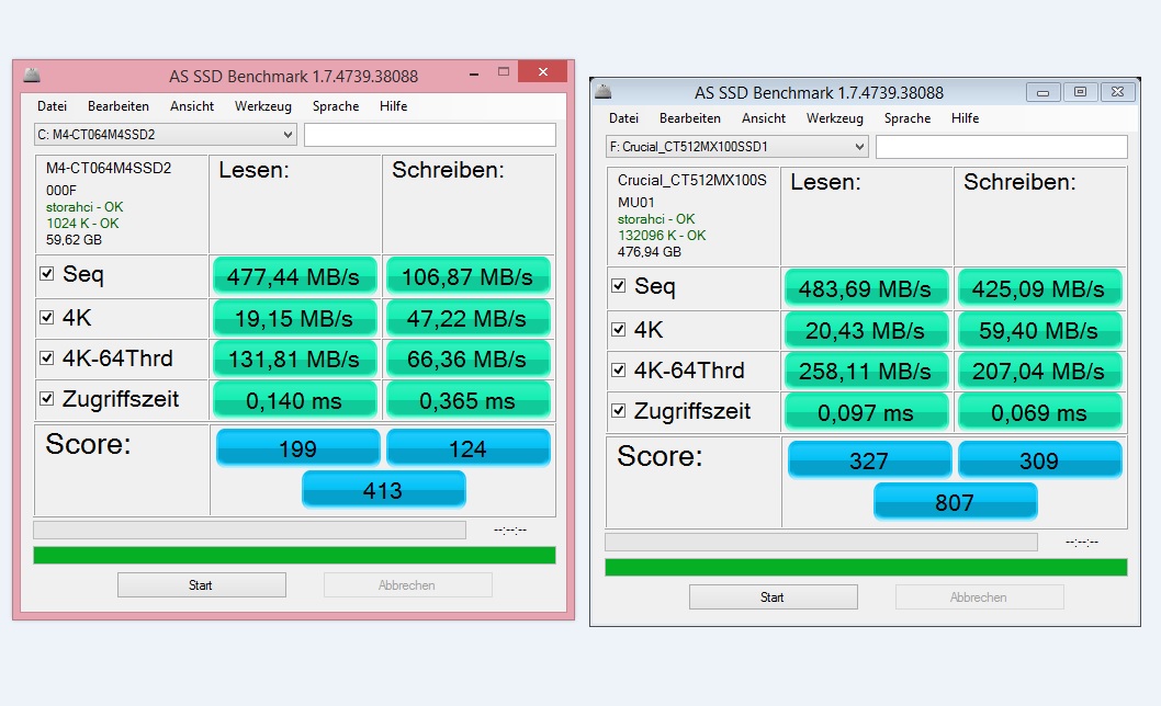 ich hab halt nur mit AS-SSD kurz nachschauen wollen, ob das halbwegs passt und war dann erschlagen von den Zugriffszeiten dir mir angezeigt wurden und dachte das wäre das was ich als "lahmarschig" bemerkt hatte