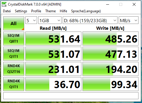 Ja, dafür passen die Werte.RoboHackfeld schrieb:die BX500 hängt am SATA 2 und dafür passen die Werte dann soweit?