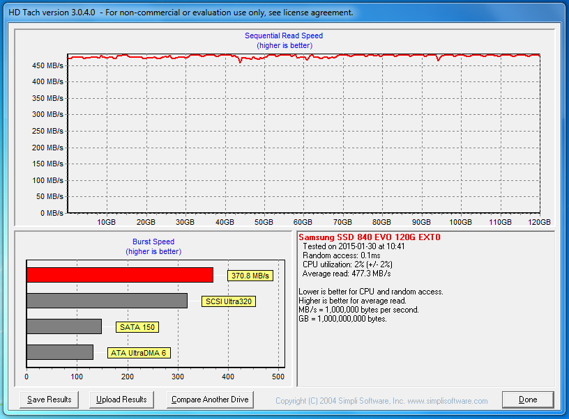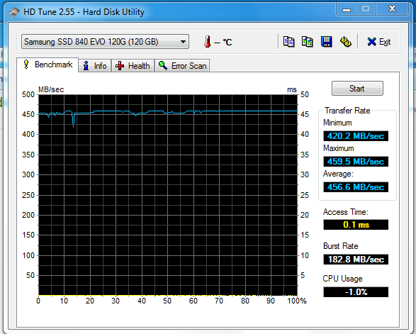 Hab auch mal meine 120Gb Evo getestet. Diese besteht aus 2 Partitionen ca 80Gb für Windows und ca 30Gb für den Rest. Im Einsatz seit November letzten Jahres.
