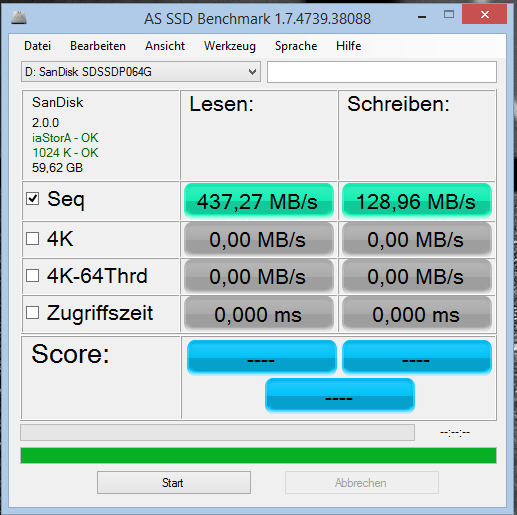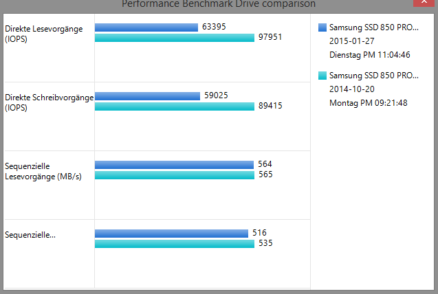 Nach dem Firmare-Update und der Wiederherstellung der Lesegeschwindigkeit sind es jetzt wieder durchgehend 390-400 MB/s.