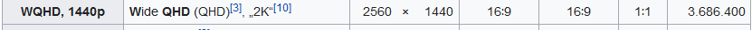 Quellen lesen und verstehen. Wikipedia ist nicht immer richtig und die behauptung dort stammt von einem computer bild artikel der seinerseits einfach behauptet das 2K WQHD entspricht.
