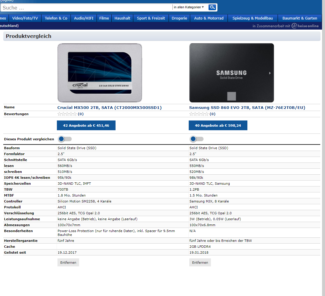 ist nur geringfügig weniger, als die 850 Evo kostet. Ich schätze in Kürze wird die 860 Evo die 850 Evo tatsächlich beim Preis unterbieten.
