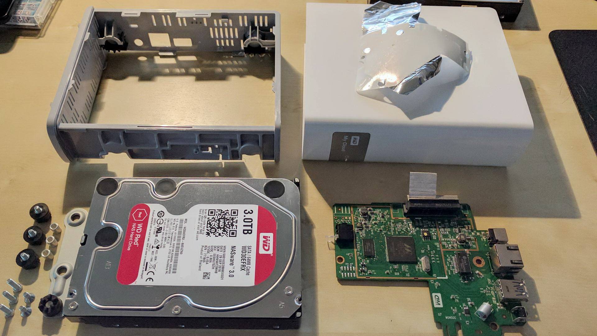 Mein erstes NAS war ein Western Digital MyCloud, also das mit fest verbauter Festplatte mit 3 TB - auch nur einer Festplatte. Die Festplatte hab ich irgendwann da rausgezupft und dann in ein MyCloud EX2 Ultra verbaut, bis ich festgestellt hab, das die WD MyCloud-Oberfläche verglichen mit anderen Grütze ist. Daher wurde das durch ein QNAP NAS ersetzt, ein Einfaches mit ARM-CPU, das war relativ langsam.