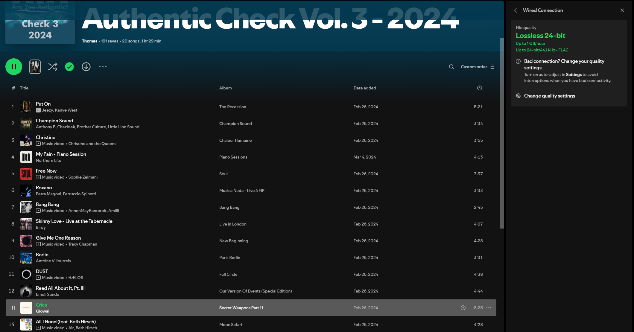 Jetzt wollte ich es wissen. Ich habe mir jetzt extra wieder ein Spotify Premium-Abo abgeschlossen und habe Another One Bites the Dust einmal in der Lossless-Version und einmal in der Sehr hoch-Version über Audacity (Audiohost Windows WASAPI) abgegriffen. Lautstärke-Angleichung in Spotify auf aus.Sun_set_1 schrieb:Beispielsweise Another one bites the dust