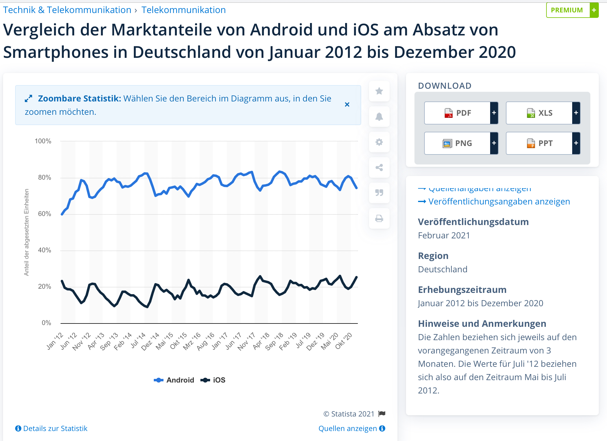Der Marktanteil von Android ist höher als der von iOS in D.