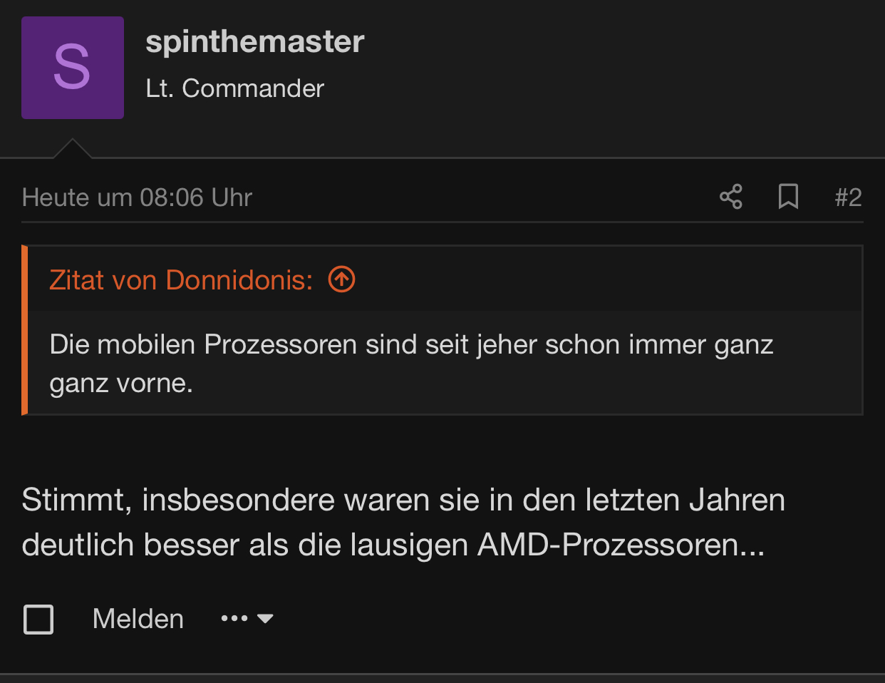 Als Antwort hast du etwas davon gelabert, dass ja AMD so schlecht sei, aber eigentlich meintest du das Gegenteil.
