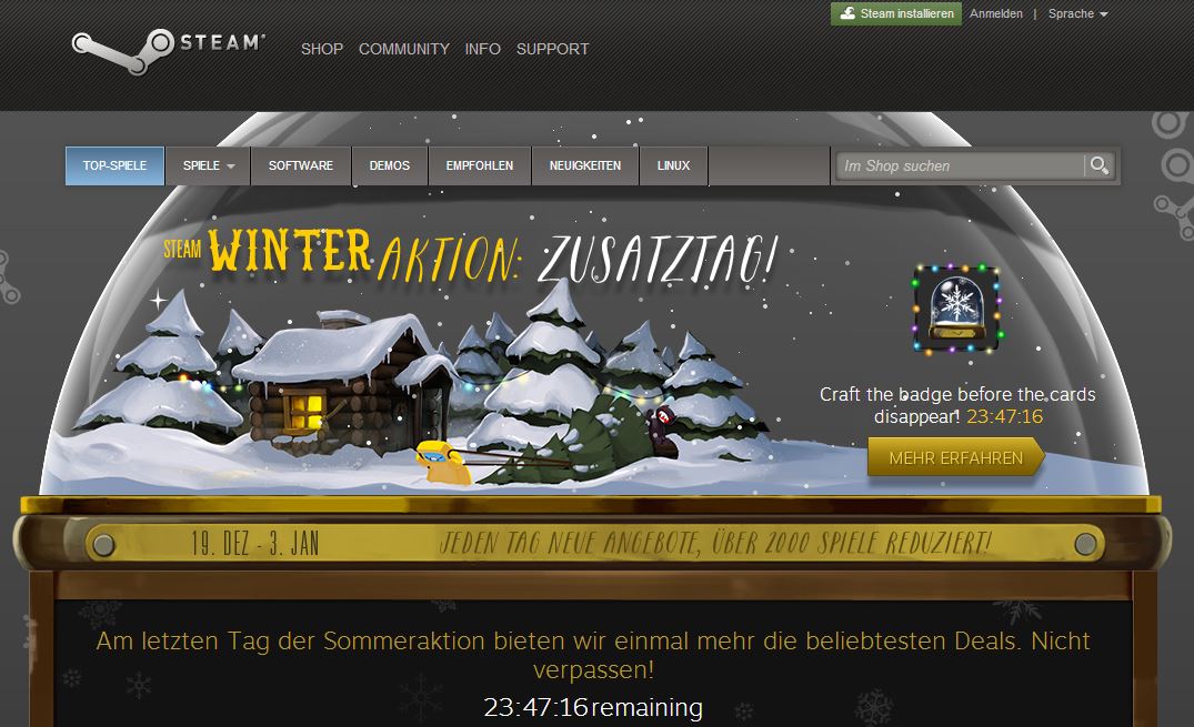 Hm weiß nicht, ich finde den Fehler nicht wirklich. Denn normal ist der Sale ja immer bereits am 02. Januar zu Ende und da er diesmal bis zum 03. Januar geht denke ich mal, dass von heute 19 Uhr bis morgen 19 Uhr dieser Zusatztag ist.