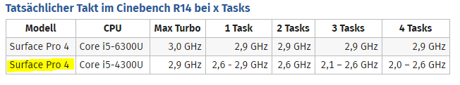 Wie erklärst du dir dann, dass im SP2 immer mit max. Takt des 4300U gefahren wird? Also 2,6 GHz bei 4T.