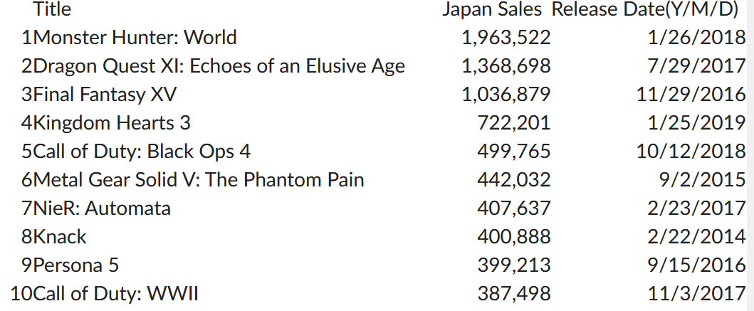 Zudem sehe ich auch in der obigen japanischen TopTen nicht viele PS-Exklusivtitel. Bis auf Knack und Persona 5 gibt es auch alles für Xbox und/oder PC... und nach dem Verkaufserfolg von Persona 4 Golden auf PC dürften auch die P5-Exklusivtage gezählt sein.