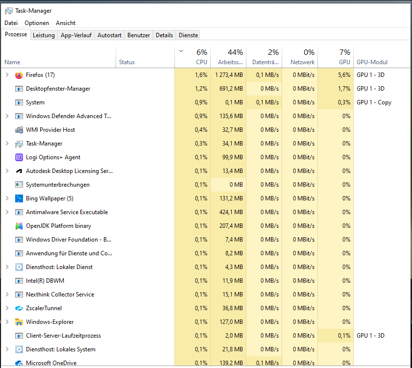 @Sotay Was ist mit diesem Vorschlag?SureValla schrieb:Beende doch bspw. einfach mal die Programme wie wenn du BF6 am Laufen hättest und mach dann den Screenshot vom Taskmanager. Vielleicht ist da ja was einschlägiges dabei.