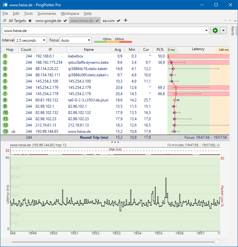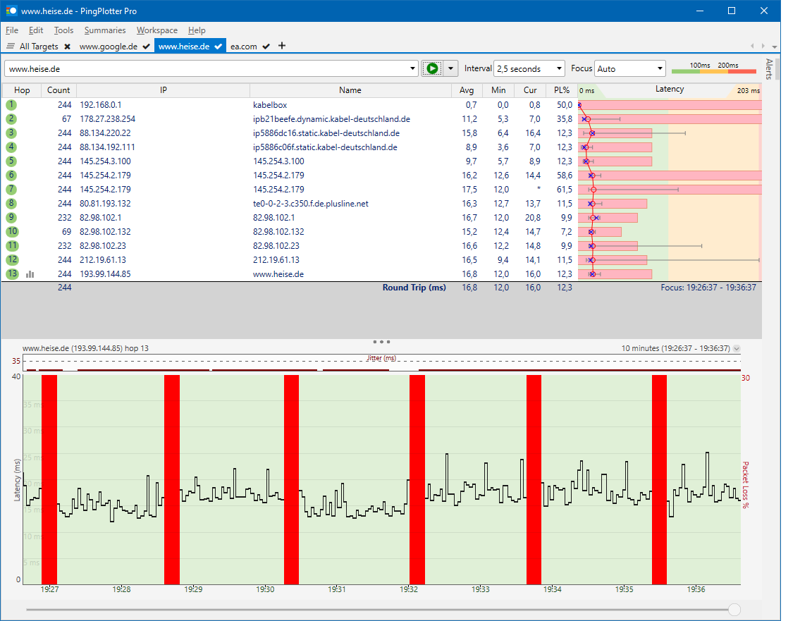 Bei PingPlotter kommen wieder schöne Erinnerungen an das Vodafone Forum hoch