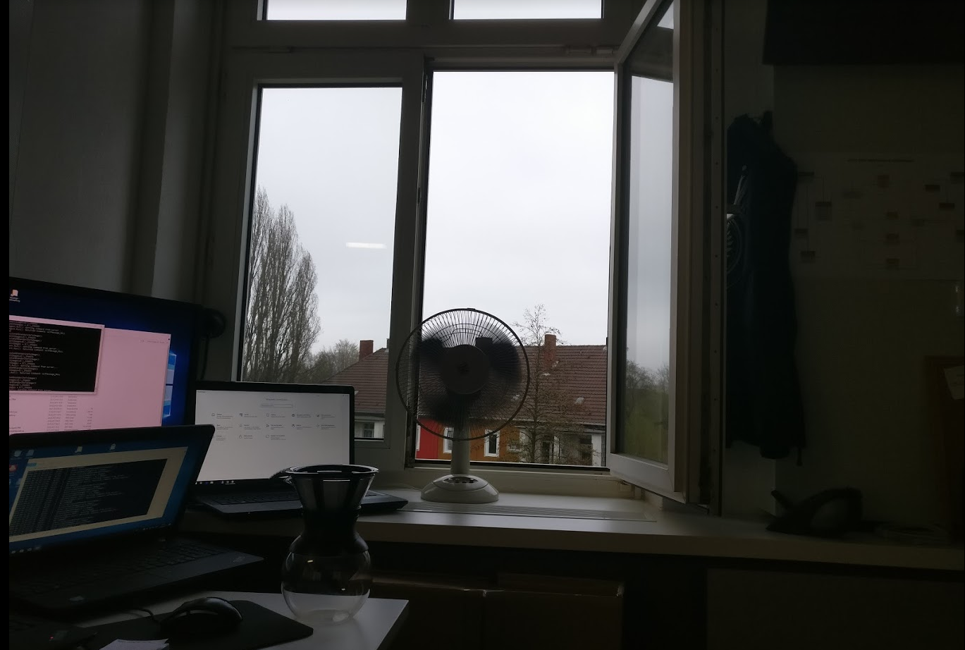 Rechts daneben sind ~1,5m Wand und dann wieder ein geöffnetes Fenster (ohne Venti).