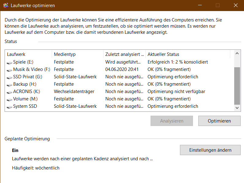 Die Defragmentierung war doch hier schon bei 75%.SpeedKill08 schrieb:Den Screenshot, als die erste SSD mit dem konsolidieren angefangen habt. Daraufhin habe ich den Vorgang abgebrochen.