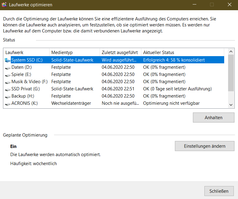 So schnell kann ich kaum einen Screen machen wie die Optimierung durch ist auf meinen Datenpartition auf der C: SSD