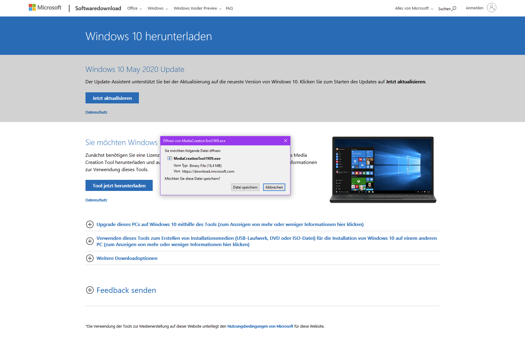 Wenn ich auf "Jetzt aktualisieren" klicke, dann kommt besagte Datei. Deshalb ja die "lange Leitung".
