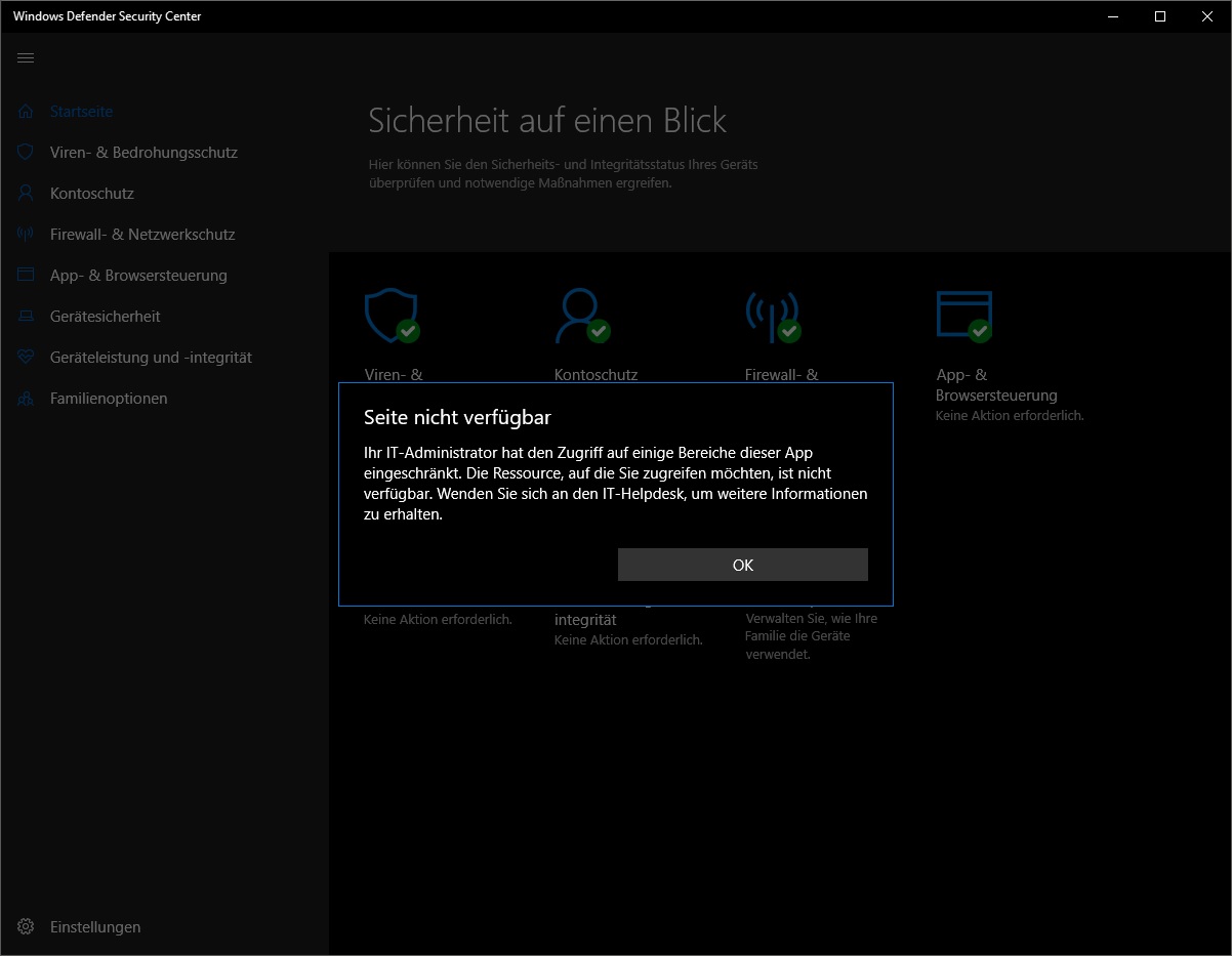 Fehler mit dem "Windows Defender Security Center" gibt es hier keine,