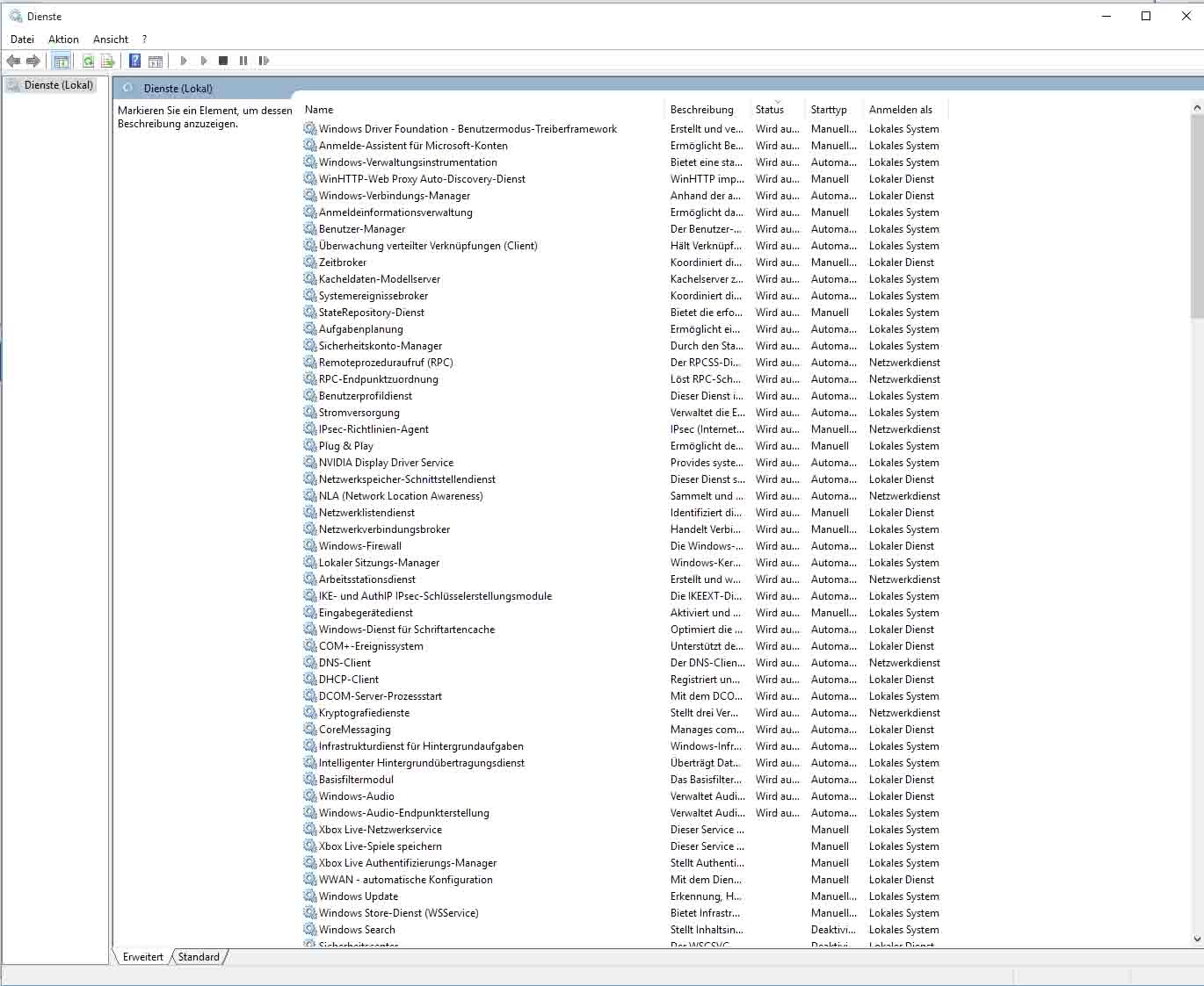 Ist eigentlich eine Trial & Error-Sache, aber hier, die folgenden Dienste müssen laufen, sonst könnten Probleme auftreten:mwi schrieb:@WhiteRabbit: