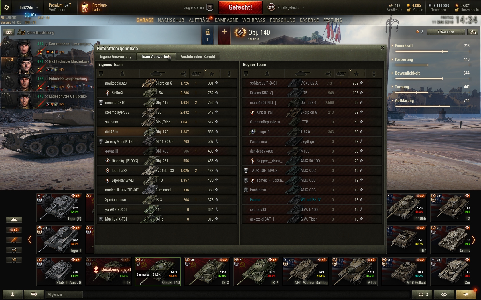 Mir ist die Statistik mittlerweile deutlich weniger wichtig als früher. Heute spiele ich im Schnitt 1std pro Tag (wenn überhauptPhear schrieb:Wobei man auch als Lowtier gut Schaden machen kann. Kommt immer auf den Panzer an. Klar, wenn dein Team Schrott ist, wirst du alleine nicht die Runde holen, aber zumindest deine Statistik nicht unbedingt verschlechtern.